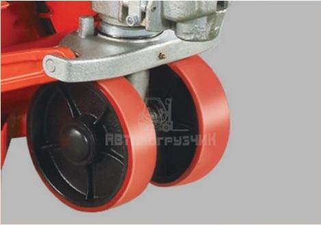- Ведущее колесо тележки обрезиненное, что обеспечивает плавное передвижение тележки по жесткой и неровной поверхности